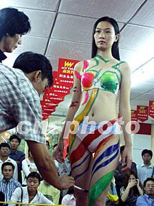 海口商場流行人體彩繪表演促銷。圖為26日在海口新世界商城舉行的人體彩繪表演現(xiàn)場。作者:王辛莉