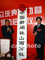 中國(guó)新聞社副社長(zhǎng)兼總編輯郭招金和山西省政協(xié)主席鄭社奎,在歡樂(lè)的樂(lè)曲和來(lái)賓的掌聲當(dāng)中,為中新社山西分社揭牌。中華全國(guó)新聞工作者協(xié)會(huì)有關(guān)負(fù)責(zé)人,以及“華夏文明看山西”港澳臺(tái)記者團(tuán)也參加了此間活動(dòng)。