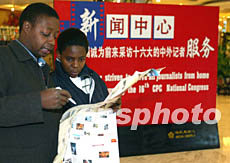 圖:中共“十六大”新聞中心準(zhǔn)備就緒