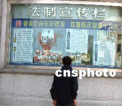 為確保社會治安穩定,迎接十六大的勝利召開,上海市各區法院在法院門口開設了法院宣傳欄,為上海市民宣傳法律知識。井韋 攝
