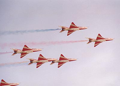 第二屆珠海航展1998年11月15日-22日在珠海機場舉行。中國空軍“八一”飛行表演隊在航展上進行了飛行表演,這是該隊歷史上首次為普通公眾表演,也是他們換裝新機后首次公開表演。展示了無間隔自動鎖定系統(tǒng)六機編隊特技,把全新的裝備、全新的編隊,全新的動作奉獻給全國觀眾。