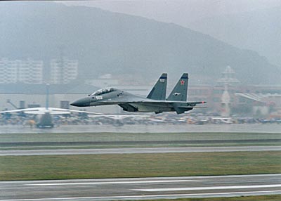隨后,中國航空工業(yè)總公司研制生產(chǎn)的F-8IIM、F-7MG戰(zhàn)斗機、K-8型教練機、直九型飛機舉行特技飛行表演;俄羅斯‘試飛院’特技飛行隊的蘇27、蘇30戰(zhàn)斗機進行了特技飛行表演,中國航天工業(yè)總公司齊射2000枚航天火箭模型,引起一陣驚嘆。整個航展過程中,幾十架中外飛行愛好者駕駛的特技飛機,超輕型飛機,動力傘,熱氣球連續(xù)不斷地升空比賽,嗡嗡的發(fā)動機鳴叫聲和穿梭往來的小飛機給航展增添了許多節(jié)日氣氛,尤其受到孩子們的歡迎。