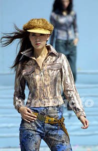 首屆中國(guó)廣州〔新塘〕國(guó)際牛仔服裝節(jié),二日在中國(guó)牛仔服裝最大的加工基地廣州新塘揭幕,模特展示由廣州名師設(shè)計(jì)的新穎牛仔服裝。
