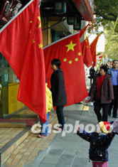 圖:北京街頭國旗招展迎接“十六大”盛會