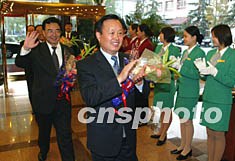 圖為寧夏代表抵達下榻的鐵道大廈時,受到店內工作人員的熱烈歡迎。