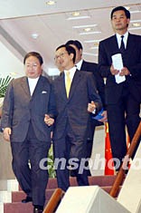 香港政府行政會(huì)議11月5日召開(kāi)會(huì)議,討論通過(guò)了備受關(guān)注的公立醫(yī)院急癥室收費(fèi)100元建議。圖為會(huì)后民政事務(wù)局長(zhǎng)何志平、財(cái)政司司長(zhǎng)梁錦松、行政會(huì)議成員梁振英等步出會(huì)場(chǎng)。 洪少葵 攝