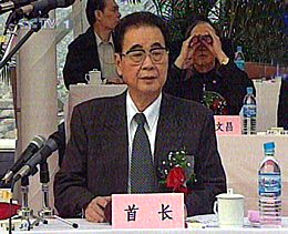 李鵬出席三峽導流明渠截流儀式。