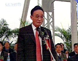 國務院副總理吳邦國宣布導流明渠截流合龍成功后,全國人大委員長李鵬發表了重要講話。