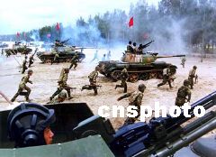 北京軍區(qū)某師合成作戰(zhàn)戰(zhàn)車隆隆譜新篇:金秋時節(jié),塞外高原某合同戰(zhàn)術(shù)訓(xùn)練基地,北京軍區(qū)某機械化師官兵以喜迎十六大的昂揚熱情,駕馭多種新型裝備,與“藍軍”斗智斗勇,雙方各出奇招,激戰(zhàn)猶酣。