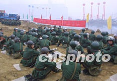 圖:長江三峽工地武警戰士嚴陣以待