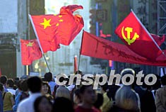 中共“十六大”即將在北京開幕,廣州大街小巷處處洋溢節(jié)日氣氛,街頭國(guó)旗、黨旗處處飄揚(yáng),喜迎“十六大”召開。作者:陳文