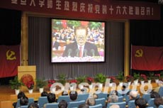 八日,中國(guó)共產(chǎn)黨第十六次全國(guó)代表大會(huì)在北京勝利召開(kāi)。上海各高校師生收看十六大開(kāi)幕式盛況。作者:湯彥俊