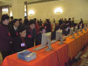 舉世矚目的中共十六大今天上午隆重揭幕,步入北京人民大會堂的代表們發(fā)現(xiàn),在人民大會堂東大廳南側(cè),新增了一排專線上網(wǎng)電腦。輕點鼠標,官方新華社所屬的新華網(wǎng)“中共十六大”實時報道網(wǎng)頁就出現(xiàn)在人們眼前。