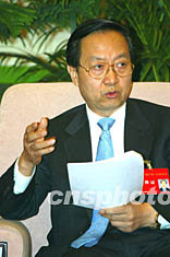 中國共產黨第十六次全國代表大會九日繼續就江澤民總書記的報告進行分組討論。圖為中國石化集團總經理李毅中代表在會上發言。作者:毛建軍