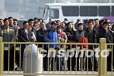 一些民眾在北京人民大會(huì)堂外駐足觀望中共十六大會(huì)場(chǎng),關(guān)注舉世矚目的盛會(huì)。 作者:毛建軍