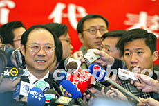 中國共產(chǎn)黨第十六次全國代表大會十日繼續(xù)舉行分組會,廈門市委書記鄭立中代表在福建代表團(tuán)會場,就臺灣記者關(guān)心的問題接受采訪。作者:毛建軍