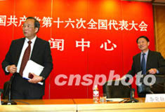 在北京召開的中共十六大十日舉行中外記者招待會,國家發(fā)展計劃委員會主任曾培炎(左)和國家經(jīng)貿(mào)委主任李榮融成為新聞人物。作者:毛建軍