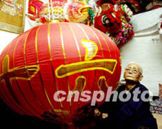 廣州最老的扎獅老藝人、九十三歲的關(guān)根老伯,欣聞中共十六大在北京召開,特用大紅絲綢扎制了一個(gè)直徑一米、高一點(diǎn)三米的大燈籠,以表祝賀。作者:羅仰明