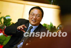 中共十六大代表、聯想集團董事局主席柳傳志十一日晚在十六大新聞中心接受中外記者訪問。作者:毛建軍
