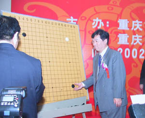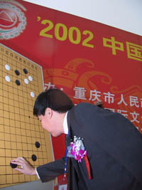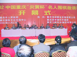 二零零二中國重慶“炎黃杯”名人圍棋邀請賽今天上午在此間正式開枰。在未來幾天時間里,來自世界各地的炎黃子孫們將在山城重慶及壯美的長江上紋枰論道,以棋會友。