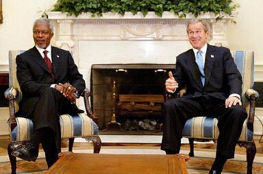 圖:美國總統(tǒng)布什在白宮與聯(lián)合國秘書長安南會晤