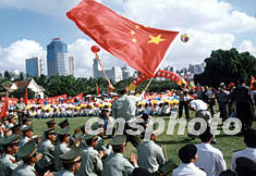 中共十六大14日下午閉幕,?谑辛f名各界人士在海口市萬綠園聚集慶祝。作者:邱江波