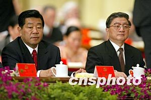 羅干和李長春十四日在北京出席中共十六大閉幕會。作者:毛建軍
