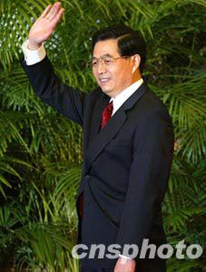 胡錦濤第一個(gè)進(jìn)入記者的視野,隨后,吳邦國(guó)、溫家寶、賈慶林、曾慶紅、黃菊、吳官正、李長(zhǎng)春和羅干依次走進(jìn),一邊走向主席臺(tái)一邊微笑著向人們揮手示意。