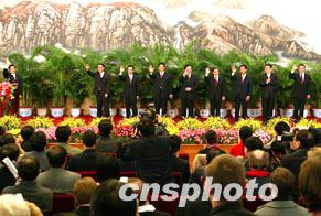 路透社說(shuō),中國(guó)共產(chǎn)黨新的領(lǐng)導(dǎo)班子在擺放有雕木屏風(fēng)的人民大會(huì)堂亮相。胡錦濤正式當(dāng)選為中共中央總書記,為世界上人口最多的國(guó)家掌舵,把握中國(guó)迅速發(fā)展的經(jīng)濟(jì)。