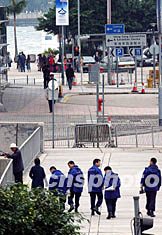 香港警方為確保第16屆世界會計師大會順利進行,實施嚴密保安措施。11月16日有關部門在會展中心巡視周邊場地。洪少葵 攝