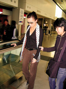 中新網11月18日電 擔任金馬獎頒獎嘉賓的劉嘉玲,昨日傍晚由助手及梁朝偉的經理人彭綺華陪同返港。