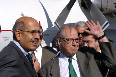 先遣組由聯(lián)合國(guó)監(jiān)測(cè)、核查和視察委員會(huì)主席布利克斯和國(guó)際原子能機(jī)構(gòu)總干事巴拉迪率領(lǐng),一行共有30多人。他們是在離開塞浦路斯,飛行大約兩小時(shí)后抵達(dá)巴格達(dá)的。
