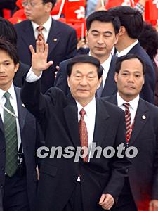 十六時五十四分,朱镕基在上車前往下榻酒店前,特意朝記者區方向走了幾步,向近百位風中站立的記者揮手,并作了一個報拳狀致意。