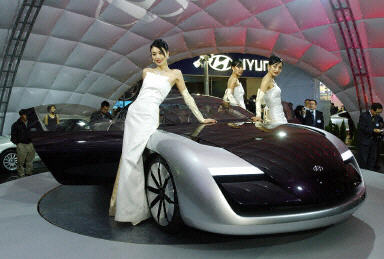 圖:韓國(guó)模特在漢城展示雙門概念小轎車