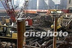二十日,美國紐約世貿(mào)中心地產(chǎn)承租人西爾維斯坦向新聞界公布了世貿(mào)中心七號樓的重建藍圖。一座高二百二十八米的辦公大樓將在三年后在原七號樓的地基上拔地而起。圖為原七號樓的施工地基。作者:中新社
