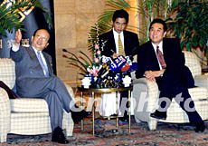 國務院臺辦主任陳云林二十二日在北京會見臺灣“中國臺商發(fā)展促進會”理事長章孝嚴一行。雙方就大陸臺商包機返鄉(xiāng)過年問題交換意見。作者:鄭萍萍