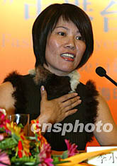 參加中國國際時裝周的臺灣設計師李小燕二十三日在北京以她身穿的服裝款式,介紹自己的時尚理念。李小燕是中國國際時裝周創辦六年來首位加入的臺灣設計師。作者:毛建軍