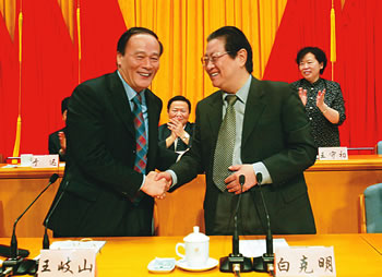 會上,孫曉群首先宣布了中央決定。中央決定:王岐山同志任海南省委委員、常委、書記;白克明同志不再擔(dān)任海南省委書記、常委、委員職務(wù)。