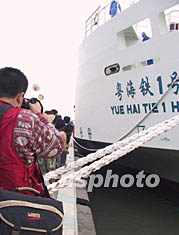 記者看到,當下午四點十分龐大的粵海鐵一號緩緩得開進南港港池的時候,一抹陽光緩緩地照射在平靜的港灣,等候在碼頭上的數(shù)千名海南百姓發(fā)出了熱情的歡呼聲……海南八百萬人民的跨海夢就要圓了。