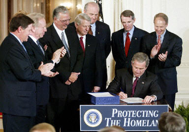 布什簽署法令正式成立國土安全部 里奇獲任部長
