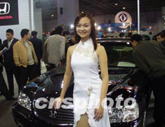 圖為由美女相伴的廣州本田轎車。
