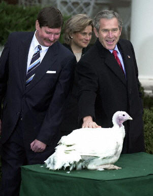 11月26日,美國總統布什(右)在白宮出席一年一度的感恩節火雞放生儀式。