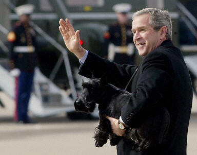 11月27日,美國總統布什懷抱小狗,回得克薩斯州克勞福德牧場過感恩節。
