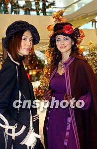 香港名模Rosemary〔右〕,12月2日在太古廣場的圣誕華麗布景前,展示名牌時裝。洪少葵 攝