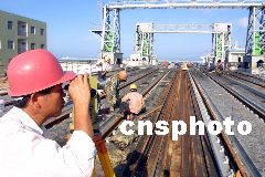 12月2日,隨著最后一根長(zhǎng)25米的特制鐵軌,成功鋪設(shè)在粵海鐵路南港棧橋橋面,全長(zhǎng)8738米的粵海鐵路南港棧橋鐵軌與海口火車站鐵軌接軌。至此,中國(guó)第一條跨海鐵路粵海鐵路南北港碼頭鐵路線全線貫通。圖為施工人員在南港棧橋上進(jìn)行測(cè)量和鋪軌工作。古月 攝
