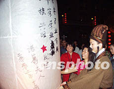 海南2日晚舉辦歡樂節,一位姓諸葛的女士在“諸葛亮”的指導下,放飛孔明燈。作者:顧時宏