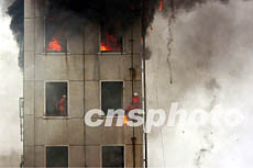四日上午,湖南省公安系統舉行該省首次大規模多警種合成、模擬實戰反恐演習。圖為防生化處置實戰演練中,“恐怖分子”在某大樓施放毒氣并設置爆炸裝置,引發大火,消防官兵們正奮力解救大樓內的“被困群眾”。作者:白祖偕