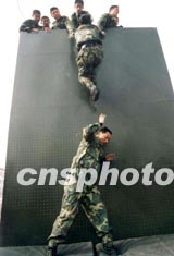 圖:解放軍某部進(jìn)行攀登高墻訓(xùn)練