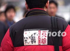 張藝謀執(zhí)導(dǎo)的首部武俠電影《英雄》本月中旬將在北京舉行全球首映式。首映前夕,一位男士身穿貼有《英雄》廣告的冬裝在街頭行走。這部電影的宣傳攻勢可見一斑。作者:張煒