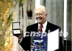 圖:美國前總統(tǒng)吉米·卡特領取諾貝爾和平獎